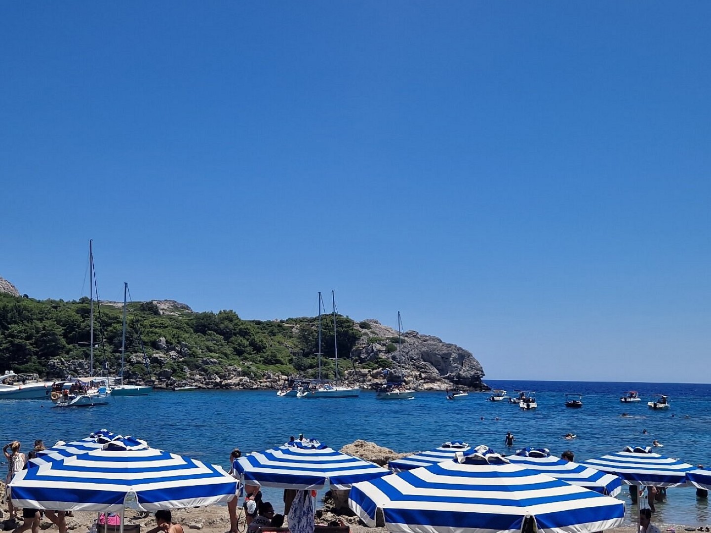 Situated in a picturesque cove just 15km from Rhodes Town, Ladiko Beach is a tranquil oasis that perfectly captures the beauty of the Rhodian landscape. Known for its calm, emerald waters and fine sand, it offers a more relaxed and family-friendly alternative to its famous neighbor, Anthony Quinn Bay.